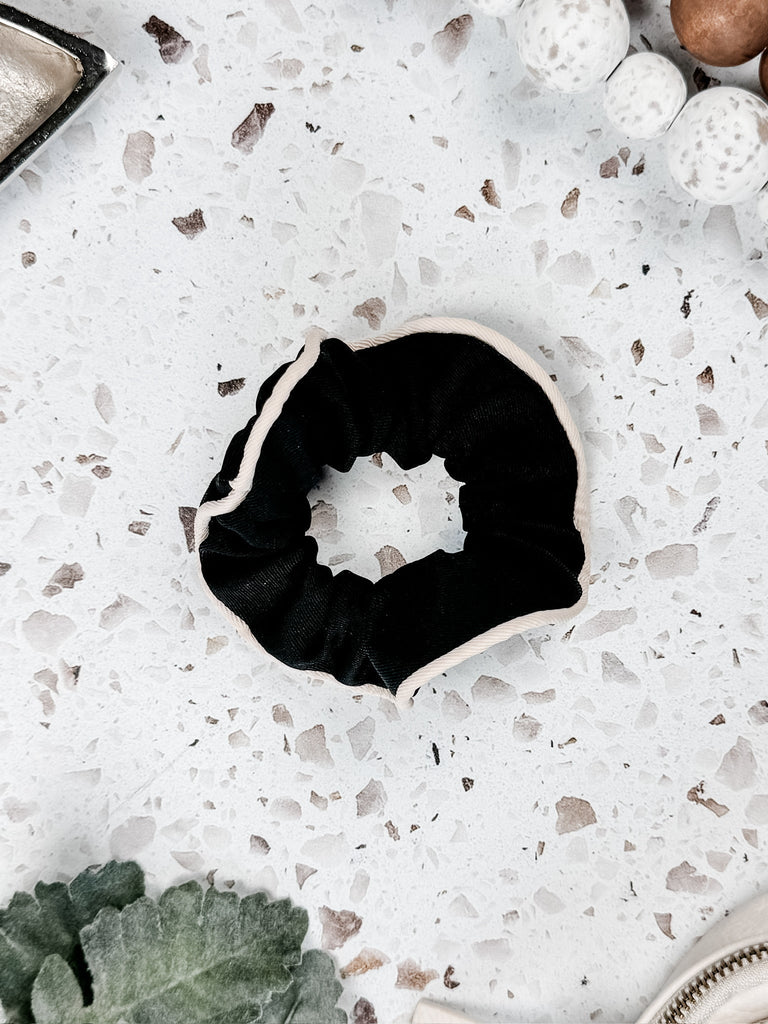 Upgrade your hair game with our Neutral Duo Scrunchies! These solid scrunchies come in a set of two, with a stylish contrast trim, stretchy band, and a micro ribbed fabric. Say goodbye to boring hair days and hello to happy hair!