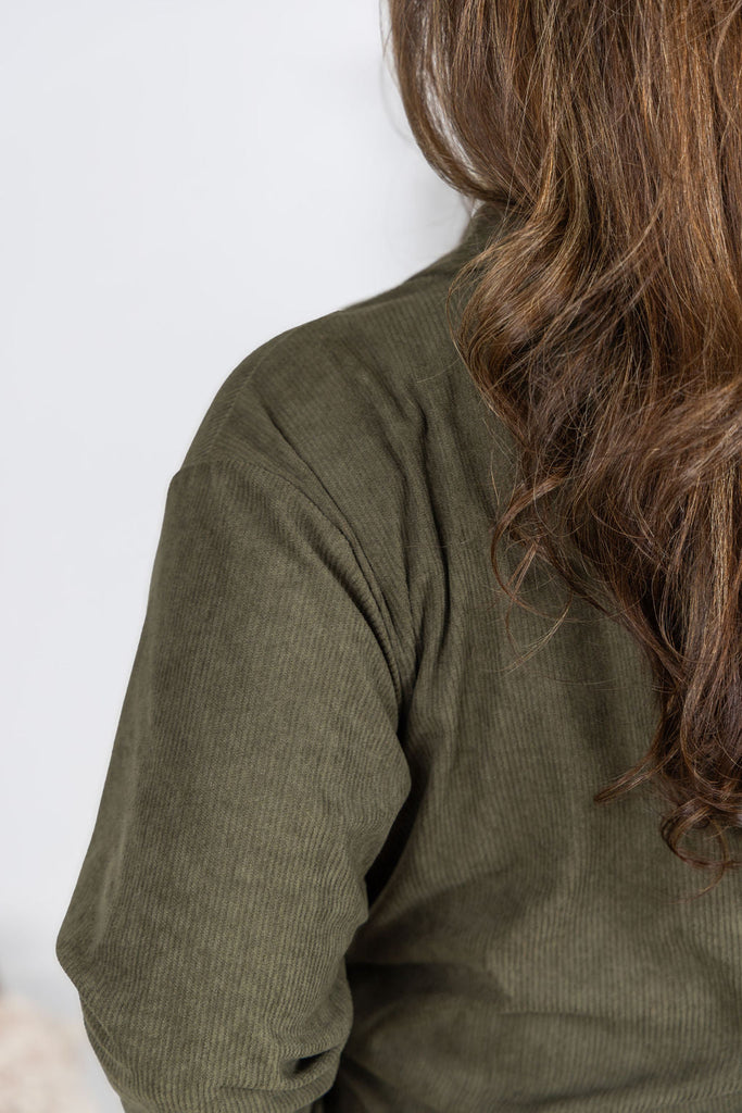 Stay cozy all fall long with our Lightweight Corduroy Button Down in Olive. Features include breast and hidden pockets, making it both functional and fashionable. The perfect addition to your fall wardrobe, pair it with your favorite booties for a complete look.